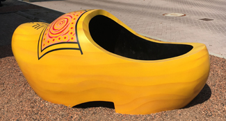 | De wasboxen bij Tankstation De Blinkerd zijn luxe, brede plekken om uw auto op een prettige wijze te wassen. Daarbij zijn er stofzuigplaatsen en is er een interieur geurmachine aanwezig. Uiteraard ontbreekt een doekenautomaat niet. | Een echte oudhollandse klomp. Hoe kan het ook anders in deze toeristische plaats Lisse. Daar moet je als (niet) toerist in gezeten hebben voor een foto! Sinds het voorjaar van 2019 is er ook nog een levensgrote bloembol op het terrein geplaatst ter promotie van de Bollenstreek en haar gedachtengoed. | |